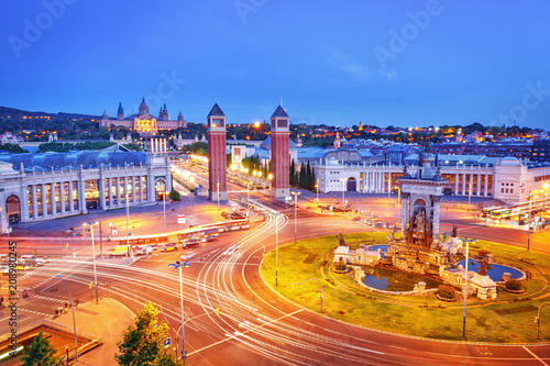 Spain Square Barcelona Illuminated At Night Stock Photo Download