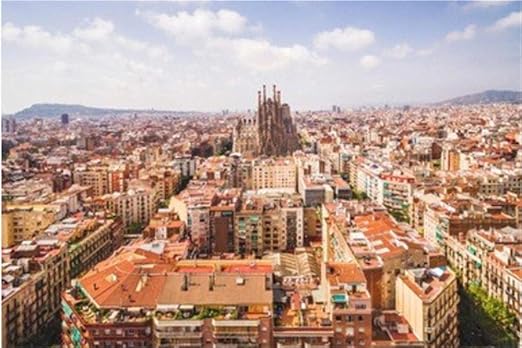 Ciudad De Barcelona En Cataluna Espana Vista Desde Arriba La