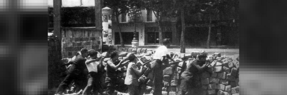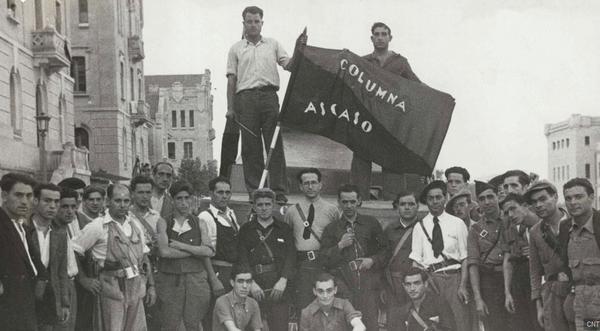 Spanish Civil War Workers Militia Marching Through The Streets Of