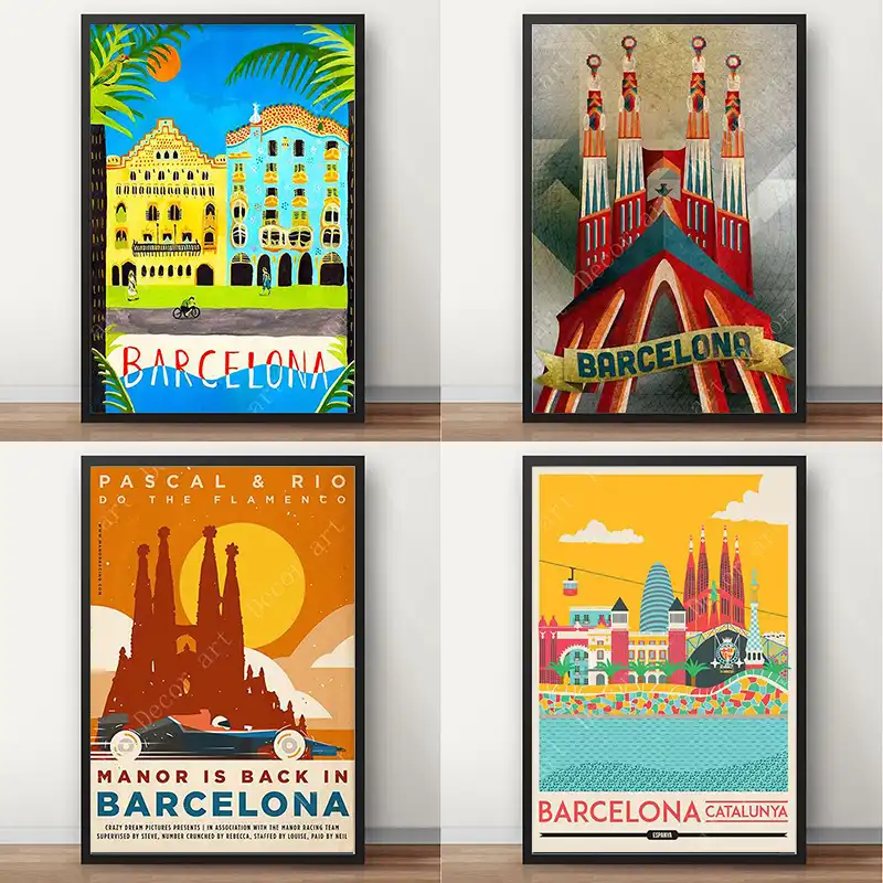 Barcelona Print Barcelona Vintage Travel Poster Spain Print Barcelona Poster City Skyline Wall Art Home Decor Gift