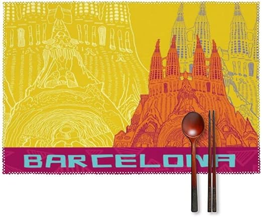 Amazon Com Novelty Placemat With Barcelona Spain Vintage Travel Poster Print Custom Placemats Kitchen Table Mats Coffee Tray Place Mats For Dining Table Set Of 4 12 X 18 Inch Home Kitchen