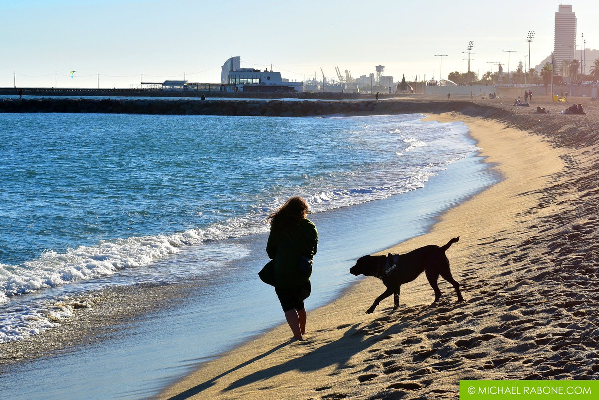 A Dog Goes By An Empty Beach In Barcelona Heavy Winds And Sea