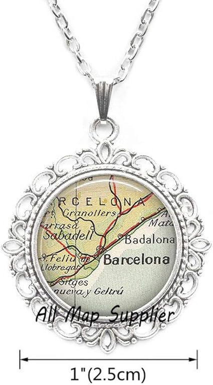 Amazon Com Allmapsupplier Fashion Necklace Barcelona Map Pendant Barcelona Necklace Barcelona Spain Map Jewelry