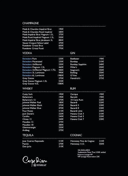 Menu Del Restaurante Pacha Barcelona Yummy Barcelona