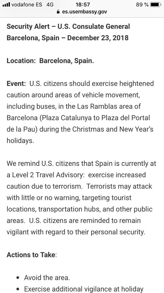 Barcelona Spain Security Alert Issued By The Us Department Of State Embassy Vax Before Travel